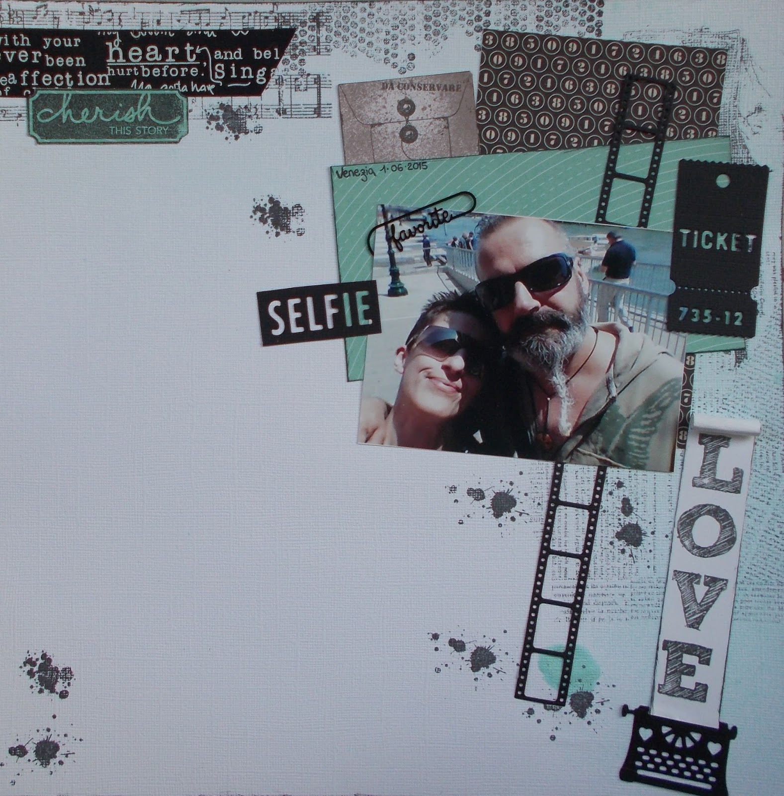This song inspired me to a page dedicated to me and my boyfriend . I chose the word love as title and used it in the sheet that comes out of the typewriter.